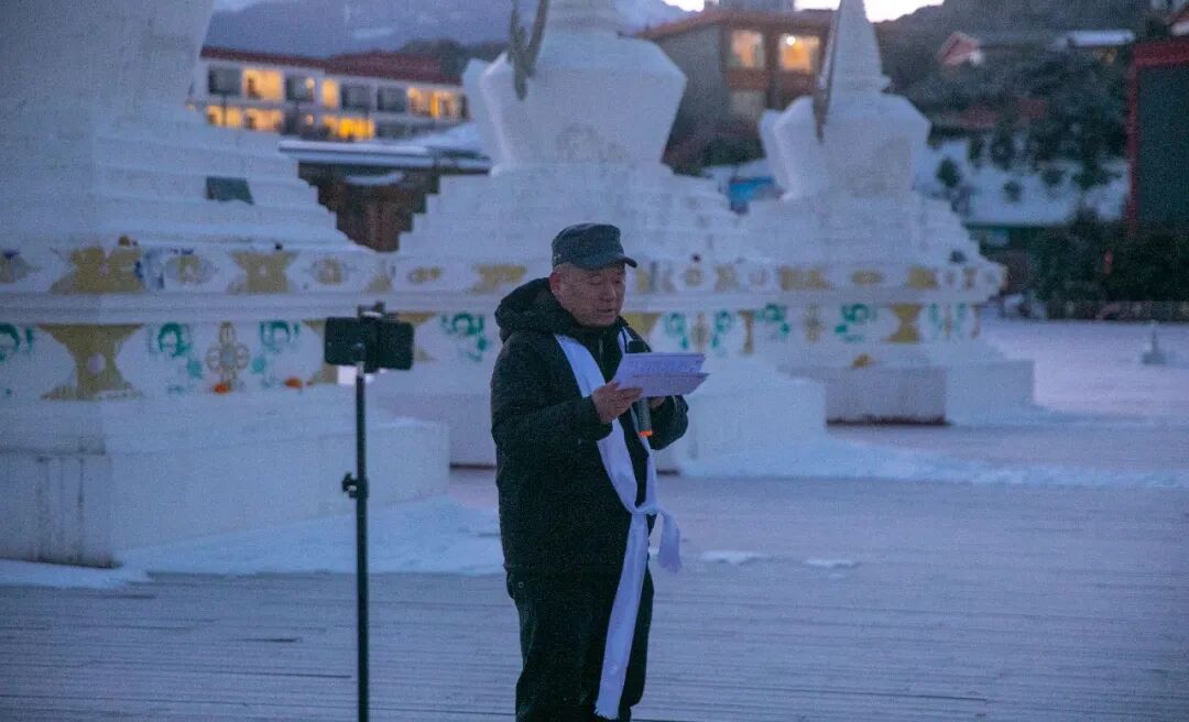 今天是2022年元月一号,我们一行北大校友代表及家人,从北京深圳等全国各地来到这里,这座举世闻名的梅里神山脚下,举办2022年元旦北大校友梅里祈福仪式,用传统的中国祈福文化迎接新的一年!可以说我们这一行即是祈福之旅,又是朝圣之旅!意义非凡而且重大!我们的国家在过去的2021年全面实现了小康社会的目标,国富民安,我们全体北大校友在过去的2021年,也都取得了不菲的成绩,功成业就。