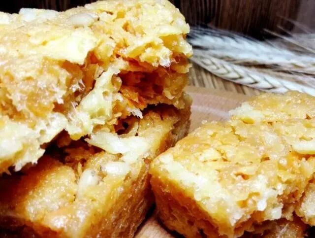 乳扇沙琪玛,虽然叫"沙琪玛",但又不同于北方沙琪玛那样用面粉制作,其主要原料是“乳扇”。乳扇沙琪玛有奶酪制品的奶香味和嚼劲,但又完美的解决了很多外地朋友对于传统乳扇本身奶膻味的困扰。