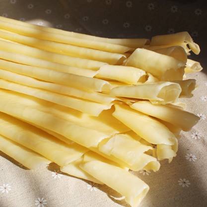 如果是刚制作好不久的新鲜乳扇,可以不做任何加工,直接生吃,味道油而不腻,鲜醇清香,原汁原味,还不上火。