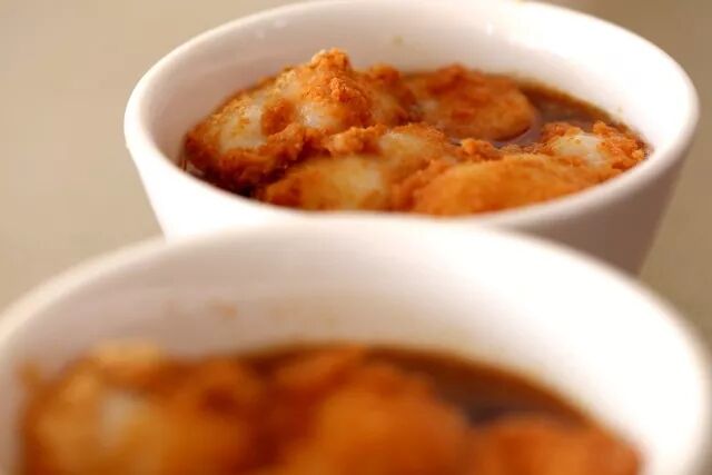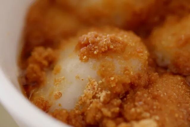 刚开始我被可爱的汤圆吸引,没想到更美味的在这黄嫩的黄豆粉上。豆粉的香味立即溢满了屋,放进嘴里,轻咬一口,糯米的细密与绵软,微烫的温度,独特的豆面香气也氤氲出儿时的味道。一种家的味道,年的感觉,也在舌尖绽放开来。