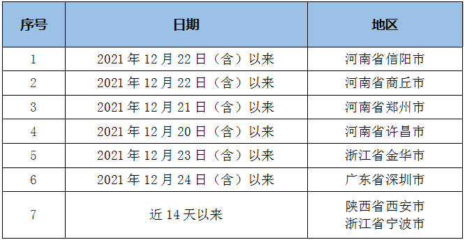 目前,国外疫情高发,国内多地报告本土疫情。陕西、河南等地持续报告本土病例,疫情发展迅猛。疫情防控形势依然复杂严峻。春节将至,人员流动更加频繁,叠加冬春季呼吸道传染病高发,疫情传播的风险持续增大,为做好昆明市新冠疫情常态化防控工作,昆明市疾控中心发布疫情防控提示:有下述表格内地区、国内中高风险地区和有本土疫情城市旅居史的来(返)昆明人员,以及与阳性病例行程轨迹有交集或同时空伴随人员,要第一时间主动向所在社区、单位、宾馆等报告,主动配合落实各项疫情防控措施。(来源:云南网)