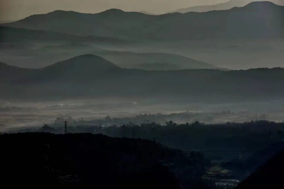 缭绕在山间田野的雾气,随着日光渐暖慢慢变薄,如同一层轻纱缓缓掀开,将安宁静谧的景色呈现。山谷中,平坝上,淡淡的雾气流动着,似乎有生命一般,将冬日的清晨笼罩起来,神秘而又清新。