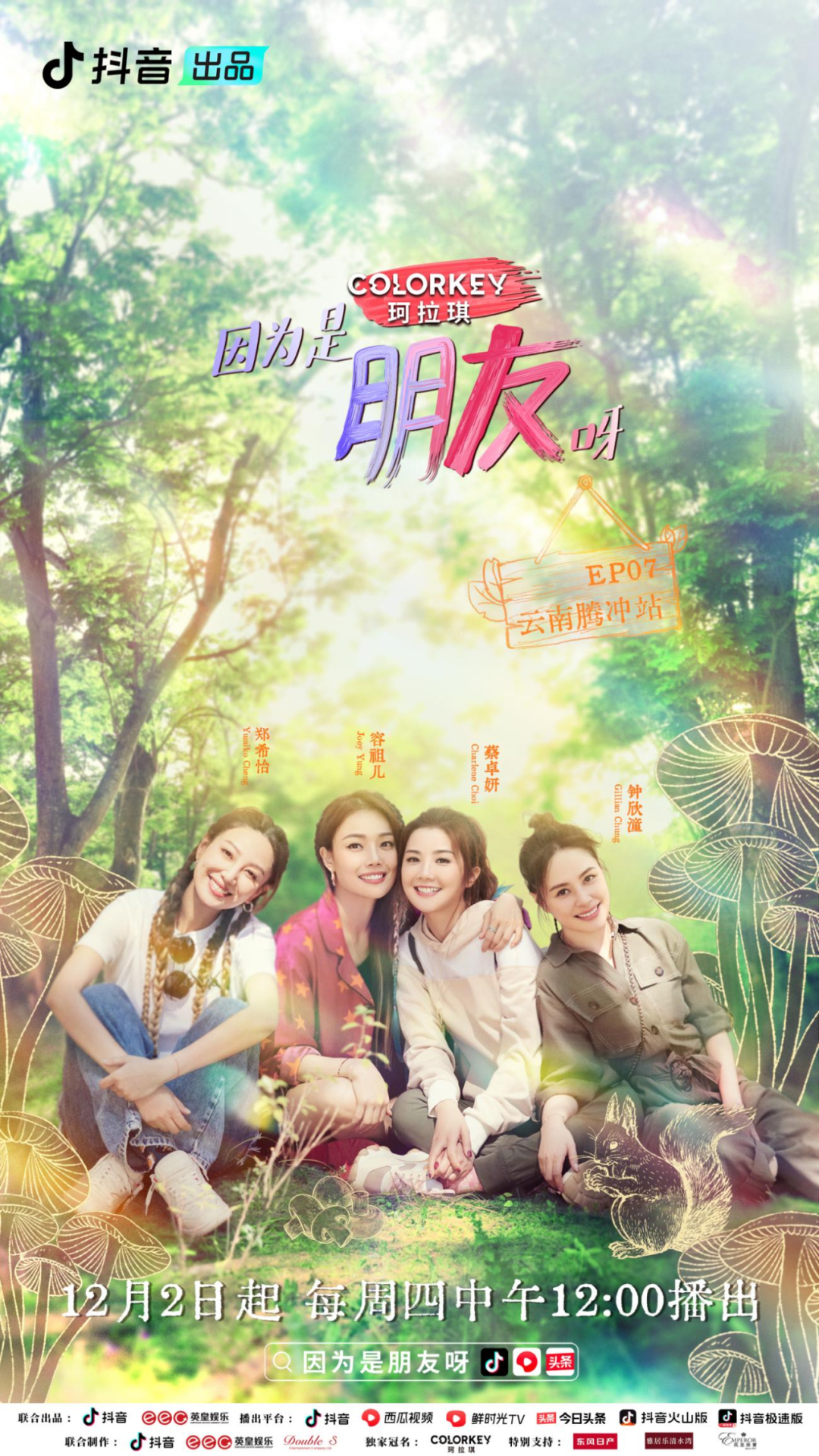 《因为是朋友呀》在腾冲拍摄,容祖儿、蔡卓妍、钟欣潼和郑希怡悉数到来北海湿地,打卡天空之境,体验“惊险刺激”的划草排、水上踏步船、古法罩鱼,在欢笑与尖叫声中开启了一段美妙之旅。