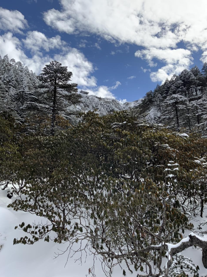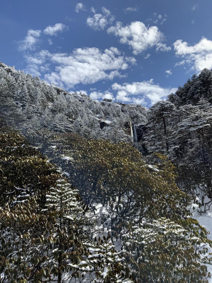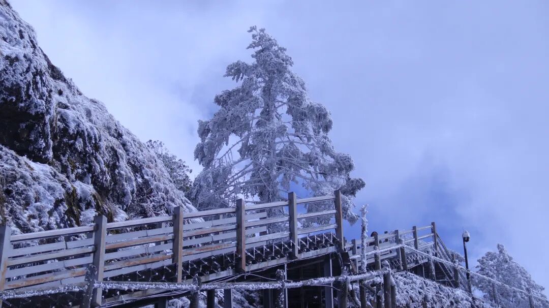“雪花飘来舞去,一点也没有停歇的意思”,景区工作人员告诉记者,“越往高海拔去,雪越积越厚。”