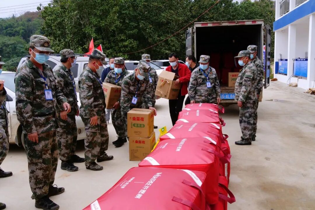 慰问组抵达河口县坝洒农场南屏社区大湾抵边联防所后,看望了红河州强边固防突击队员,并与他们亲切交谈,详细了解他们在河口的工作、生活情况,并为他们送上米、油、棉被等慰问物资和节日祝福。