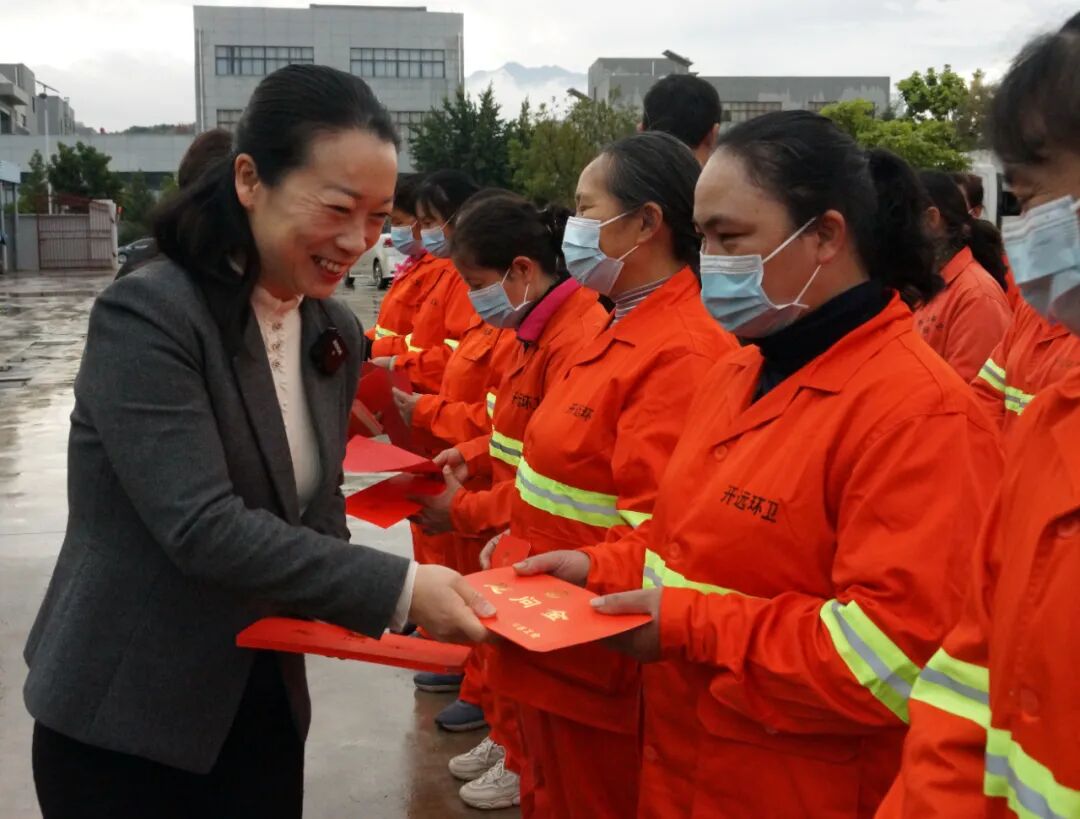 在开远市,慰问组首先为环卫工人代表送去慰问金。张艳梅表示,环卫工人每天奔波在城区的大街小巷,起早贪黑、斗酷暑、战严寒,为城市的美丽、整洁默默奉献。这次慰问,旨在表达对环卫工人的诚挚感谢。