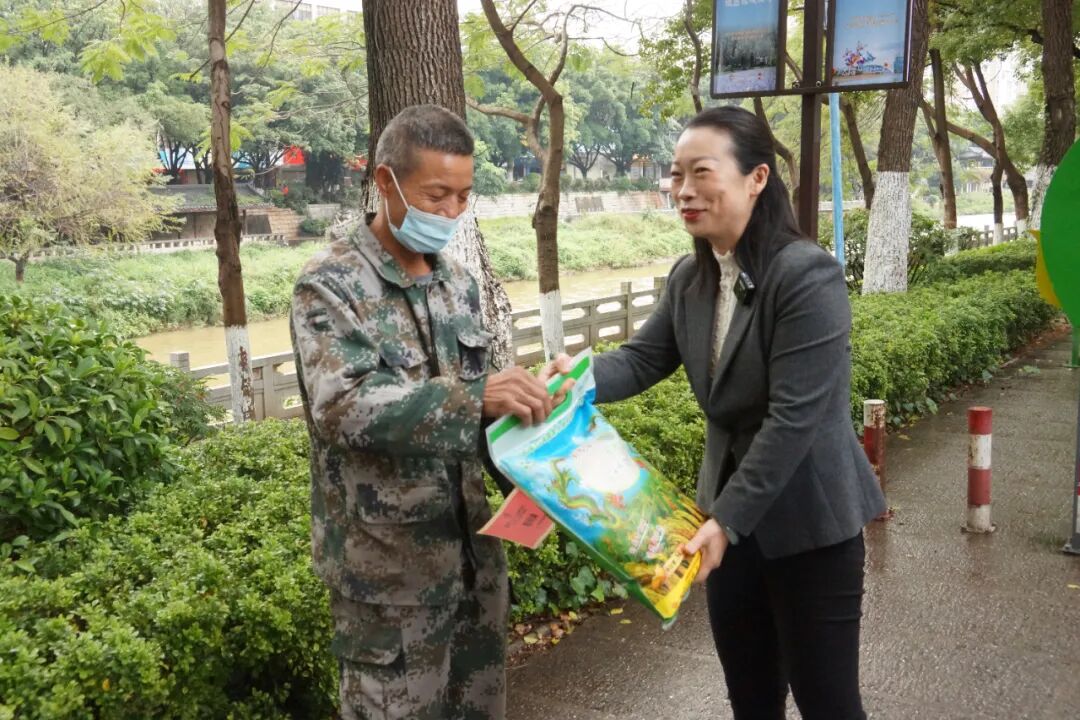 在街心花园,慰问组对环卫工人,外卖送餐员、出租车司机等新就业形态劳动者共60人进行现场慰问,向环卫工人发放慰问金,为新就业形态劳动者发放免费健康体检卡,让他们感受到了来自工会组织的关心和关爱。