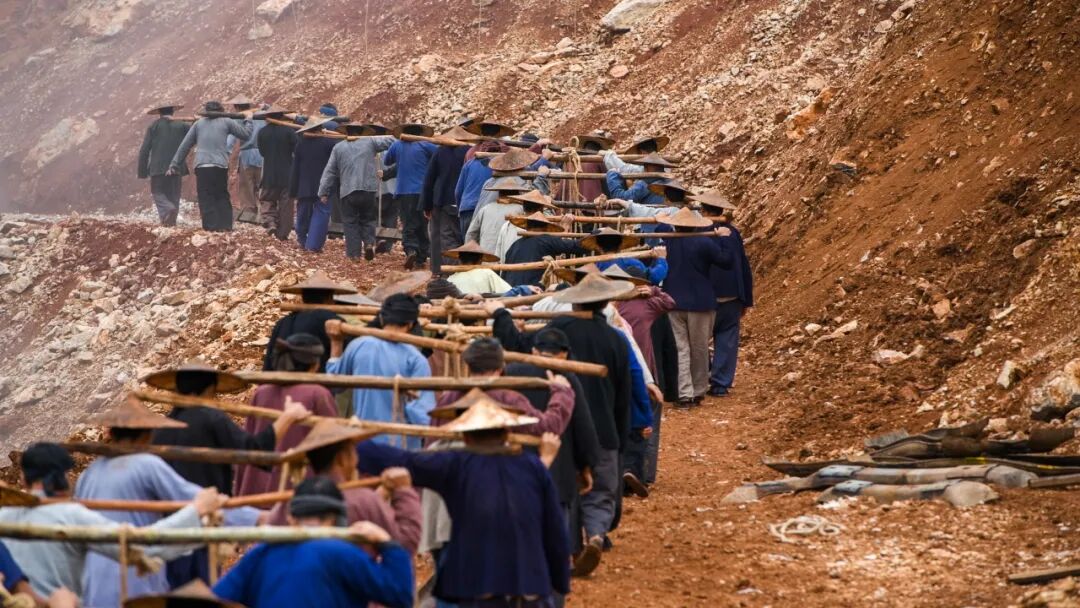 在开远的一个采石场,周卫平带领摄制组组织了一百多个工人去抬铁轨,呈现百年前滇越铁路修建时候的场景,这些用的都是电影讲故事的方式。