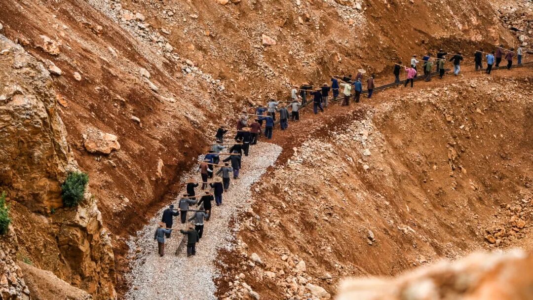 180吨重的钢铁构件,都要靠肩推背抗,才能运到工地然后组装。一百余名身强力壮的工人,现代化的重型机械,尽管竭尽全力,还是举步维艰。难以想象,百年前的劳工们,在没有任何机械辅助的情况下,是如何把一节节铁轨挂在万丈悬崖之上的。
