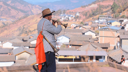 位于云龙县境内东北部的长新乡属于山区,字阿朝从小在这里生长,祖祖辈辈都是吹奏唢呐的艺人,浑厚辽远的唢呐声也在这空荡的山谷里回响了漫长的岁月。