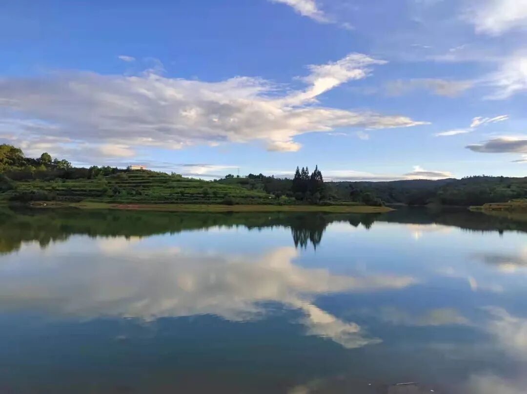 大西二景“群星捧月”。座落于大西村附近的大西水库,被称为东方天鹅湖,它就如同一轮明月嵌在雄伟的大西神山上,宛如一颗闪闪发光的明珠把大西点缀得生机蓬勃,富有诗意。