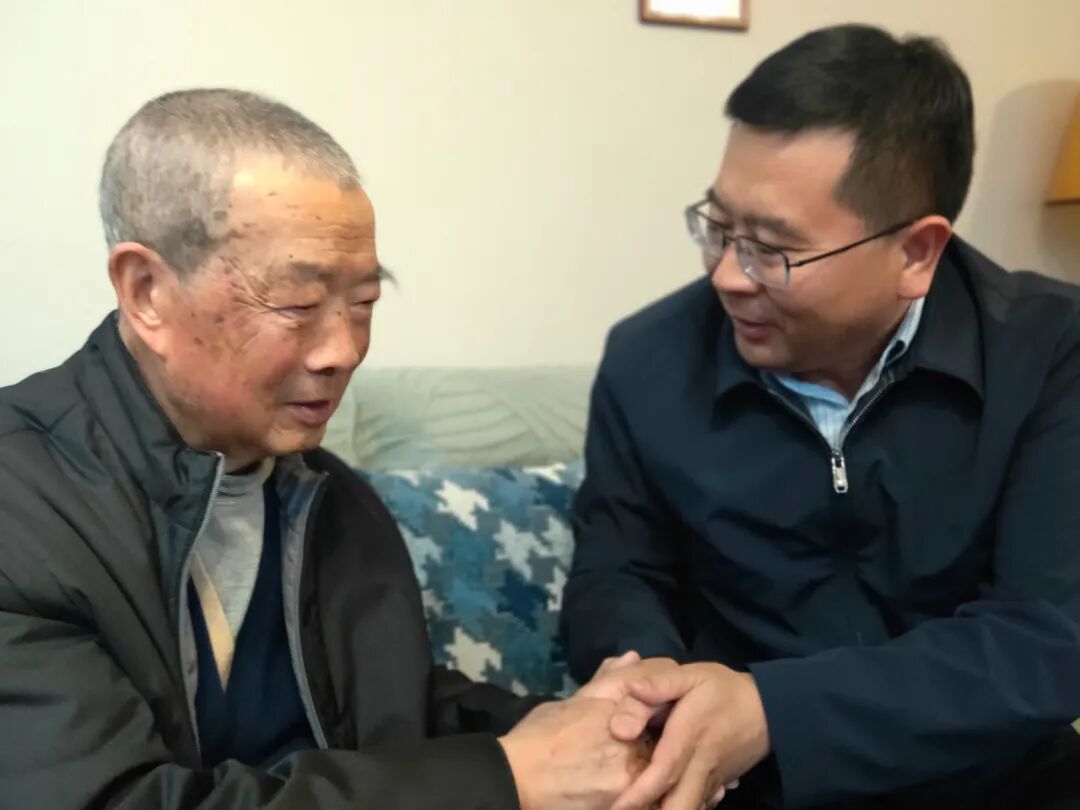 在91岁高龄的离休干部杨群同志家中,赵国良书记与其促膝交谈,仔细询问她的身体健康状况、生活起居情况和存在的困难,并请她多保重身体。