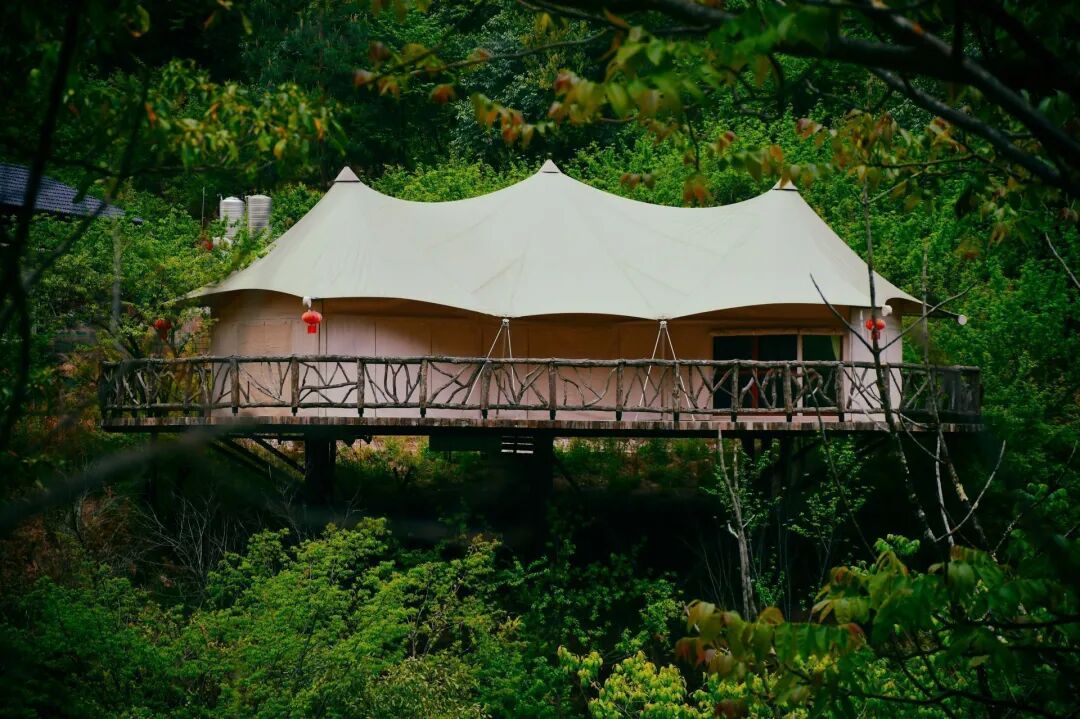 “黎明帐篷酒店”位于丽江老君山黎明景区内,距离丽江市区约124公里,处于峡谷中森林最茂密的地方,这里没有钢筋水泥墙,没有喧嚣人群,只有错落有致的帐篷镶嵌在群山之中,只有丰富的负氧离子守护人们的大健康。