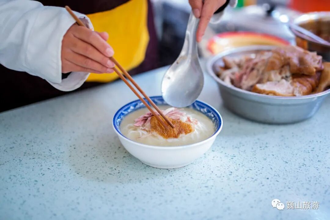 巍山扒肉饵丝选料严格、制作考究,色鲜味正、清淡适中、不油不腻、香气四溢深受海内外美食爱好者青睐。