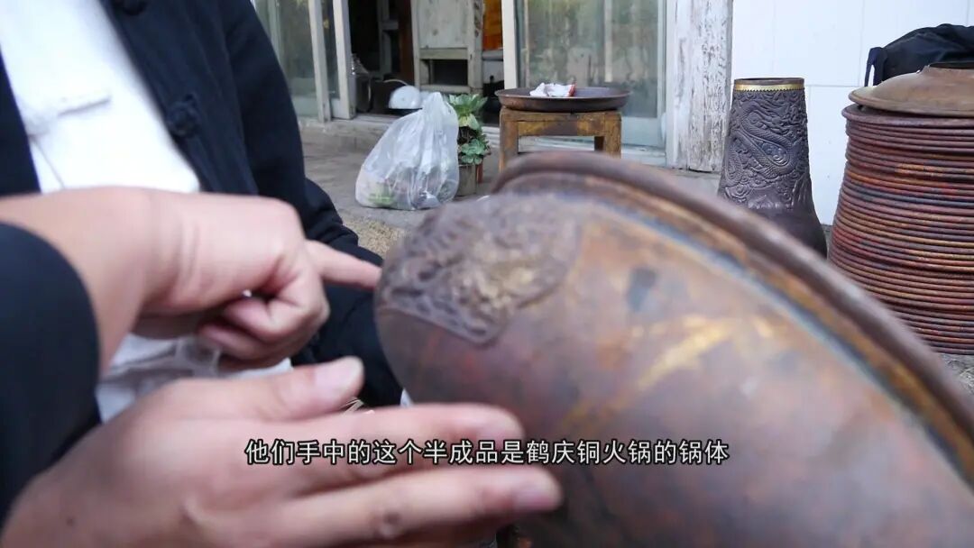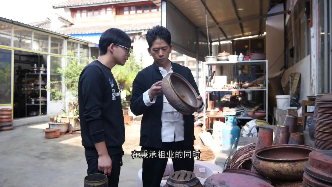 他们手中的这个半成品是鹤庆铜火锅的锅体。两兄弟为能打造出外观古典、使用便捷的铜火锅,已修改过无数次。