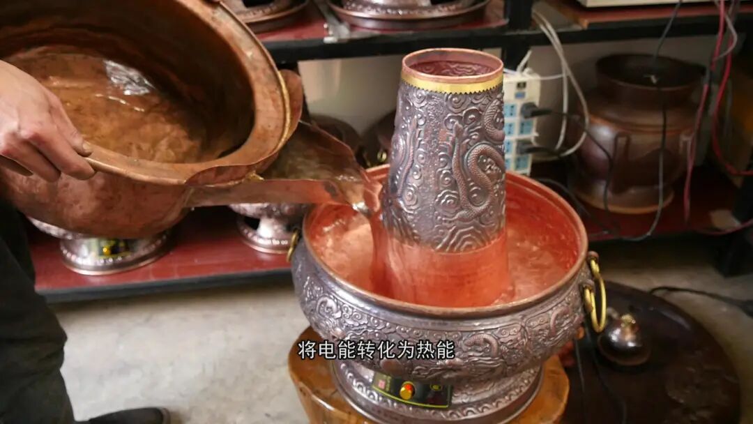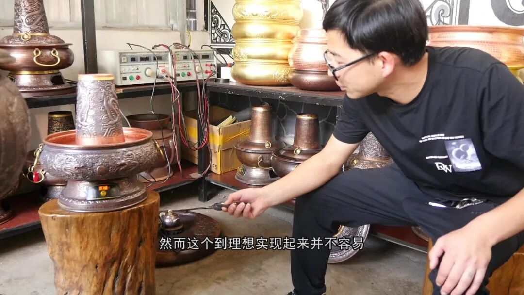 传统的鹤庆铜制火锅制作好以后,要融入现代科技,将电能转化为热能,就可以实现两兄弟“电碳两用”的理想,然而这个到理想实现起来并不容易。铜质本身导电率高、电阻太小,能量转化时要做到导热均匀、用电安全就非常困难了。