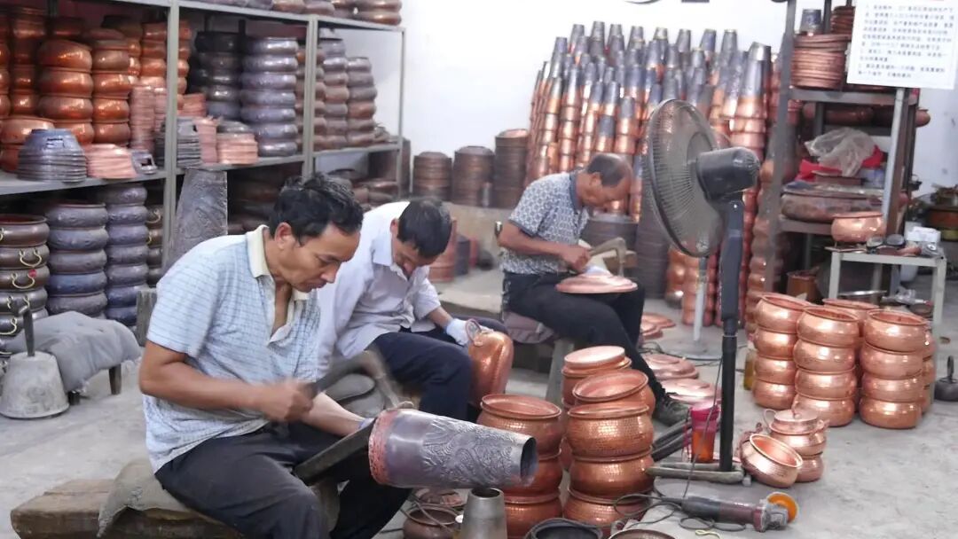 千百年来,秀邑的铜匠们,无论是大理国时在崇圣寺铸造铜钟的“首匠”、还是茶马古道上“走夷方”的秀邑男女、亦或是当下驰骋互联网的铜匠新秀,正因这种不屈的铜之魂,续写者鹤庆秀邑一年复一年的铜匠历史。