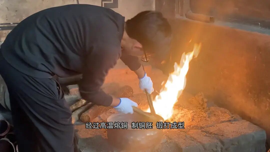 千百年来,一把铁锤,一把錾子,与铜匠的双手从未分离。在这一锤一錾间,考验的是匠人的精雕细琢,体现是匠人的“岁月”和用心坚守。