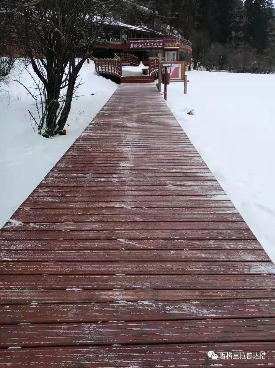 距公园门景8KM,由于碧塔海生态教育体验区受到严格保护,因此访客需按照公园划定的区域范围内活动,体验碧塔海需徒步1公里左右的木式栈道前往湖边观景台,体验完毕原路返回至停车场,此段徒步线路往返共2公里,时间大概50分钟左右。