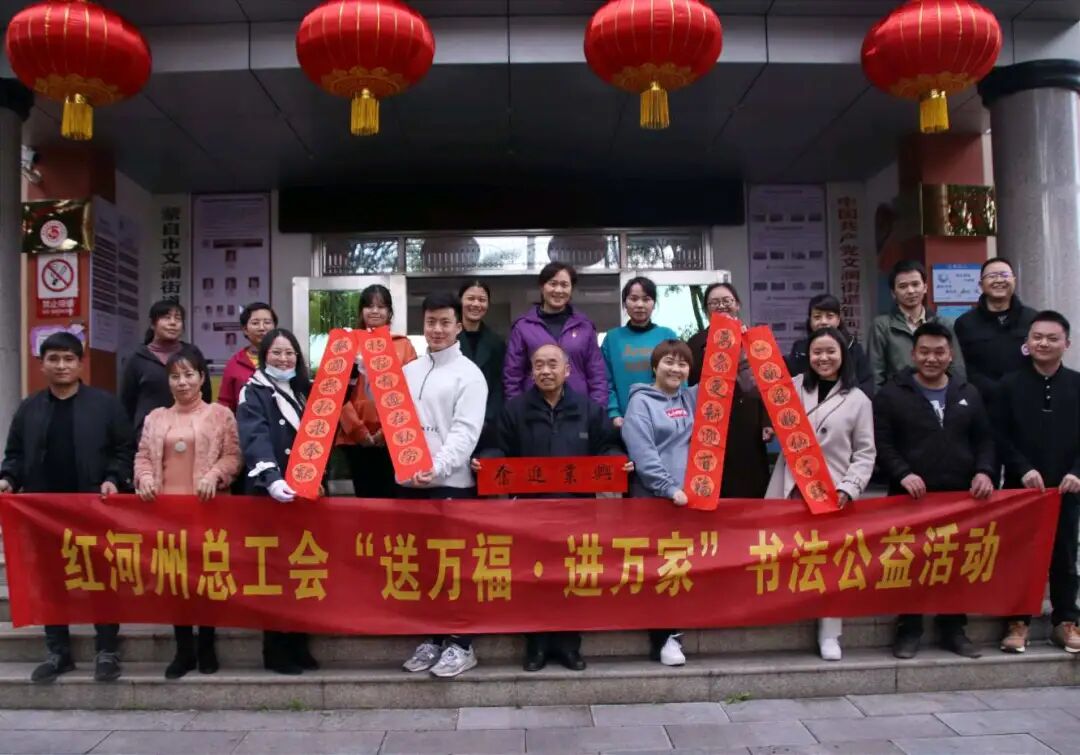 红河州总工会“送万福 进万家”书法公益活动不仅营造喜庆祥和的节日气氛,同时也为广大职工送上“娘家人”的祝福与温暖,进一步提升了职工的获得感和幸福感。
