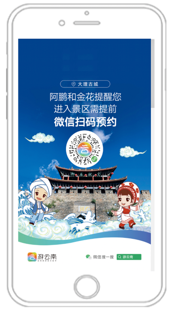 操作说明:可以长按识别以上二维码(或通过“游云南”App或“游云南”小程序点击【门票·预约】-选择【大理州】-点击【大理古城】)