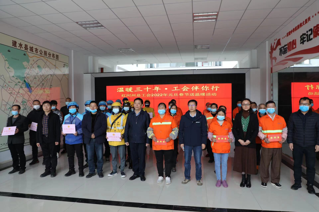 为深入贯彻党的十九届六中全会精神,把党和政府的关怀、工会组织的温暖及时送到广大职工群众心坎上,进一步关心关爱困难职工和一线职工,在2022年元旦春节之际,红河州总工会组织全州各级工会深入开展“温暖三十年 工会伴你行”2022年元旦春节送温暖暨送温暖三十周年系列活动。