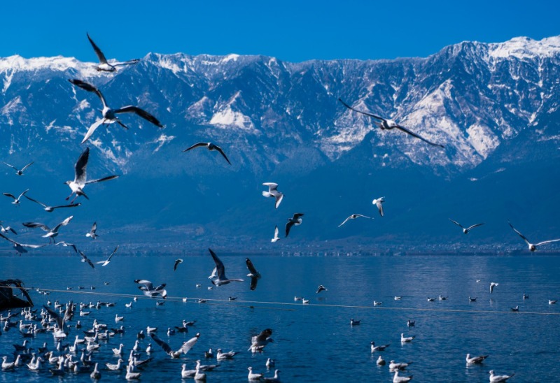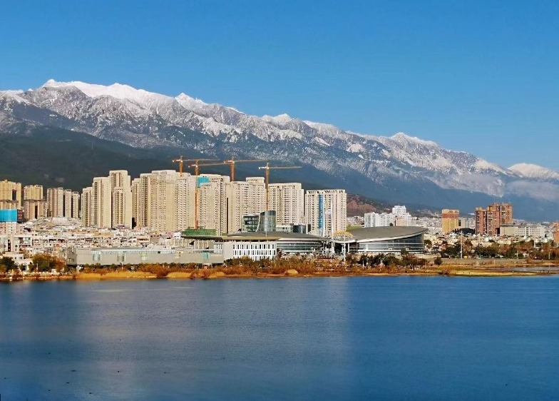 雪后初霁的苍山,在碧蓝洱海的映衬下