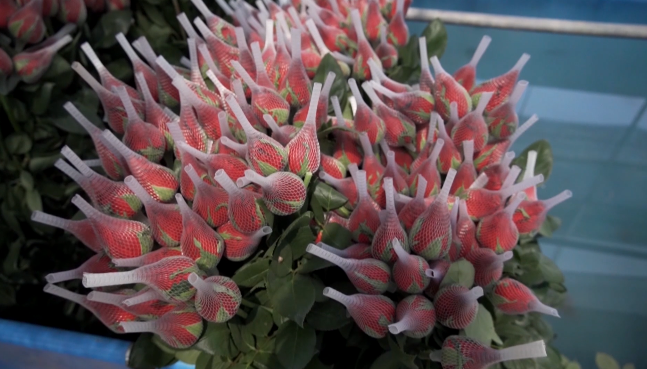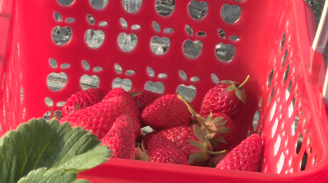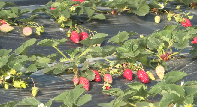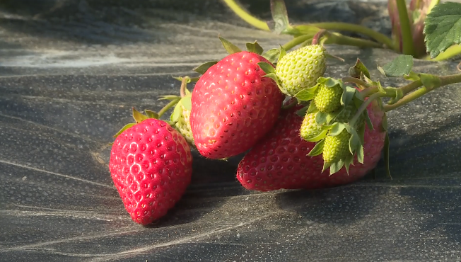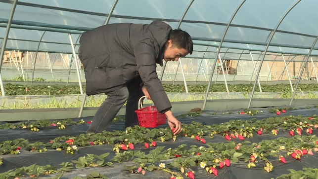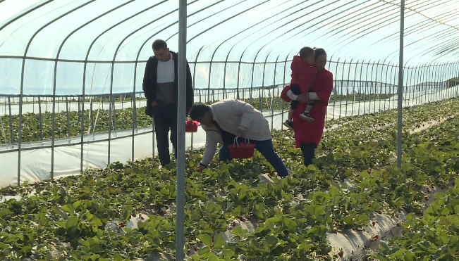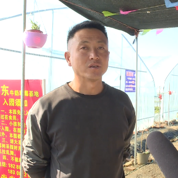 大东牛奶草莓基地负责人陈永林:“在政府的帮助下效益是非常不错的,现在正是草莓采摘季节,在此我们欢迎各位新老顾客,到我们园里来采摘草莓,采摘草莓的价格是30元一市斤。”