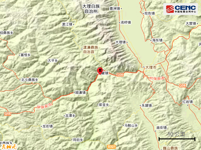 周边县城:震中距漾濞彝族自治县15公里、距大理市29公里、距巍山彝族回族自治县46公里、距弥渡县51公里、距永平县51公里,距大理白族自治州23公里,距昆明市275公里。