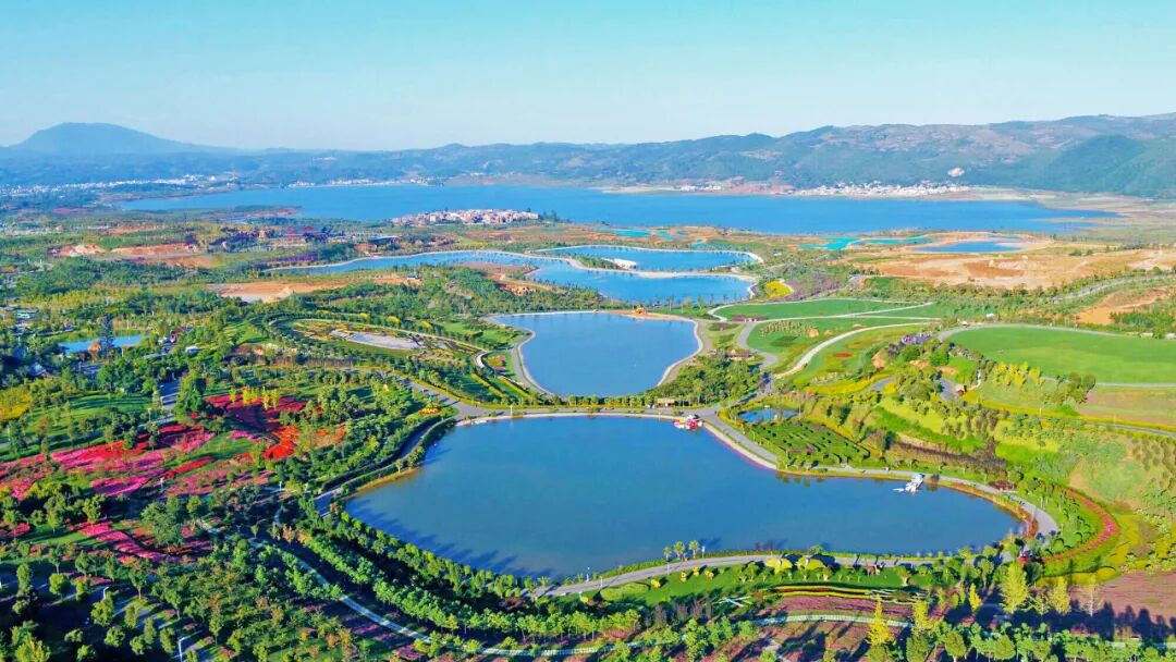 弥勒·太平湖森林小镇人文自然科普基地位于红河哈尼族彝族自治州弥勒市弥勒太平湖森林小镇。小镇通过生态修复、石漠化治理,因地制宜打造山、水、林、田、湖、草生命共同体,通过改造形成由山顶生态林保育带、山腰绿化景观林过渡带、山底复合农林缓冲带、湖滨防护林隔离带、湿地水生植物净化带组成的立体综合生态修复体系,建成大地艺术《太平公主》、云上浪漫花海、三角梅园等200多个生态景观项目。