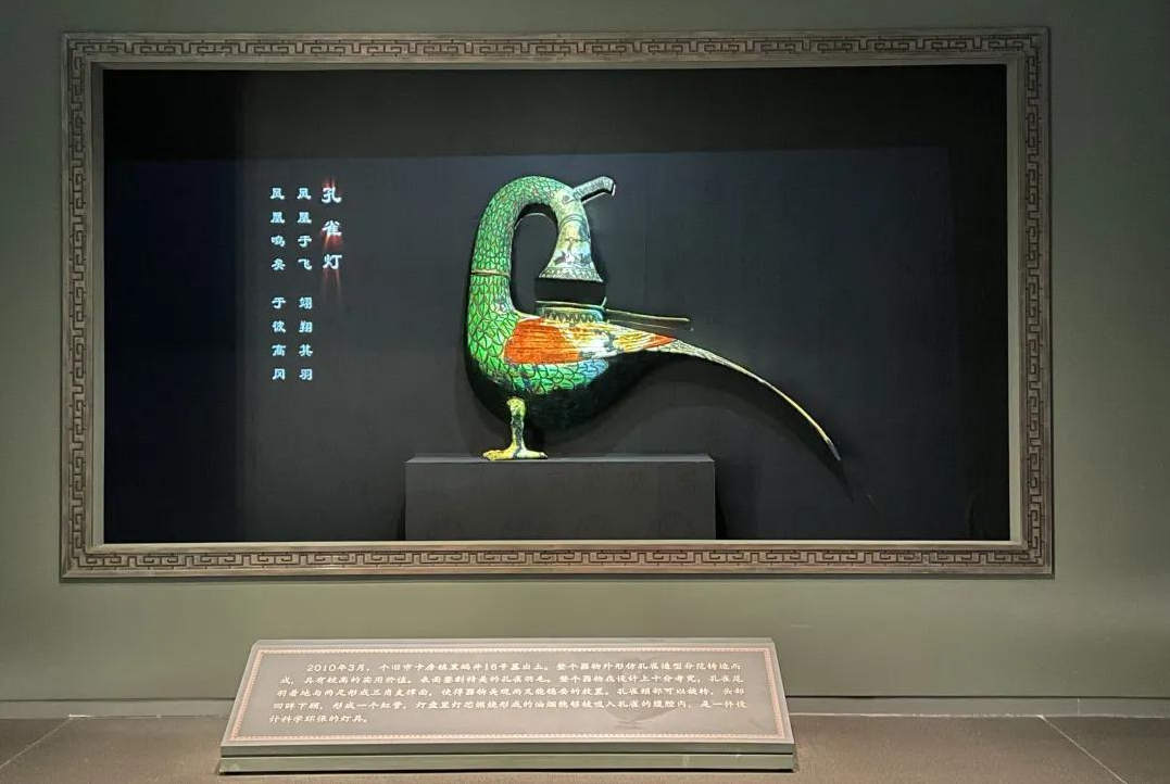 馆藏可移动文物1445件/套,共4000余件,其中国家一级文物有孔雀灯、提梁壶等,国家二级文物有线刻神兽纹三足盘、青铜壶等,国家三级文物藏品种类主要为金、银、铜、铁、锡、陶、瓷等。