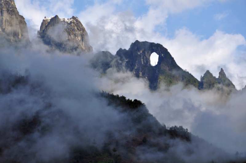 石月亮是怒江大峡谷中的一大奇景,透过洞口可以看到另一侧的蓝天,仿佛它是开天辟地时就耸立在那里,每一个看到它的人,都希望接近它,它没有阴晴圆缺,没有初一十五,什么时候都是一轮圆月,颇有“皎皎碧罗雪,萧萧贡山秋。明月伴石月,万古照江流。”之感,这古老的自然景观足以见证你们坚定的爱情。