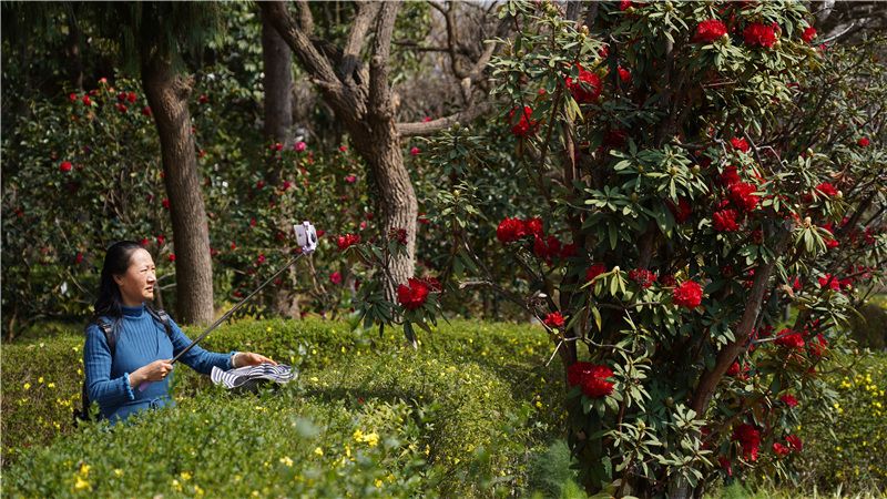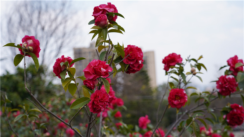 “山茶展颜春光润,流年笑掷景气新。”楚雄峨碌公园山茶园内,山茶花次第开放,喜迎各方游人。
