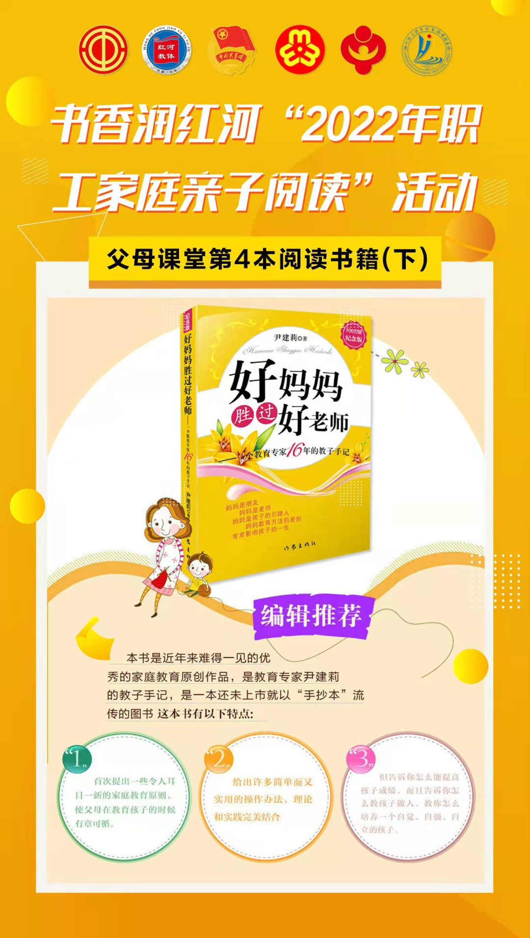 自书香润红河“2022年职工家庭亲子阅读”活动开展以来,每天都能收到许多家长和孩子真情实感的阅读感言,为此,红河州总工会专门增设了栏目对阅读感言进行精选刊登,但由于家长和孩子热情高涨且红河州总工会微信公众号版面有限,感言不能全部展示,只能挑选部分进行展示。无论您的感言是否被采用刊登,相信每个家长和孩子爱阅读的心、对知识的渴求都是一样的,希望大家继续以高涨的热情参与书香润红河“2022年职工家庭亲子阅读”活动,让书香点亮红河!