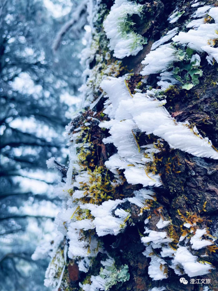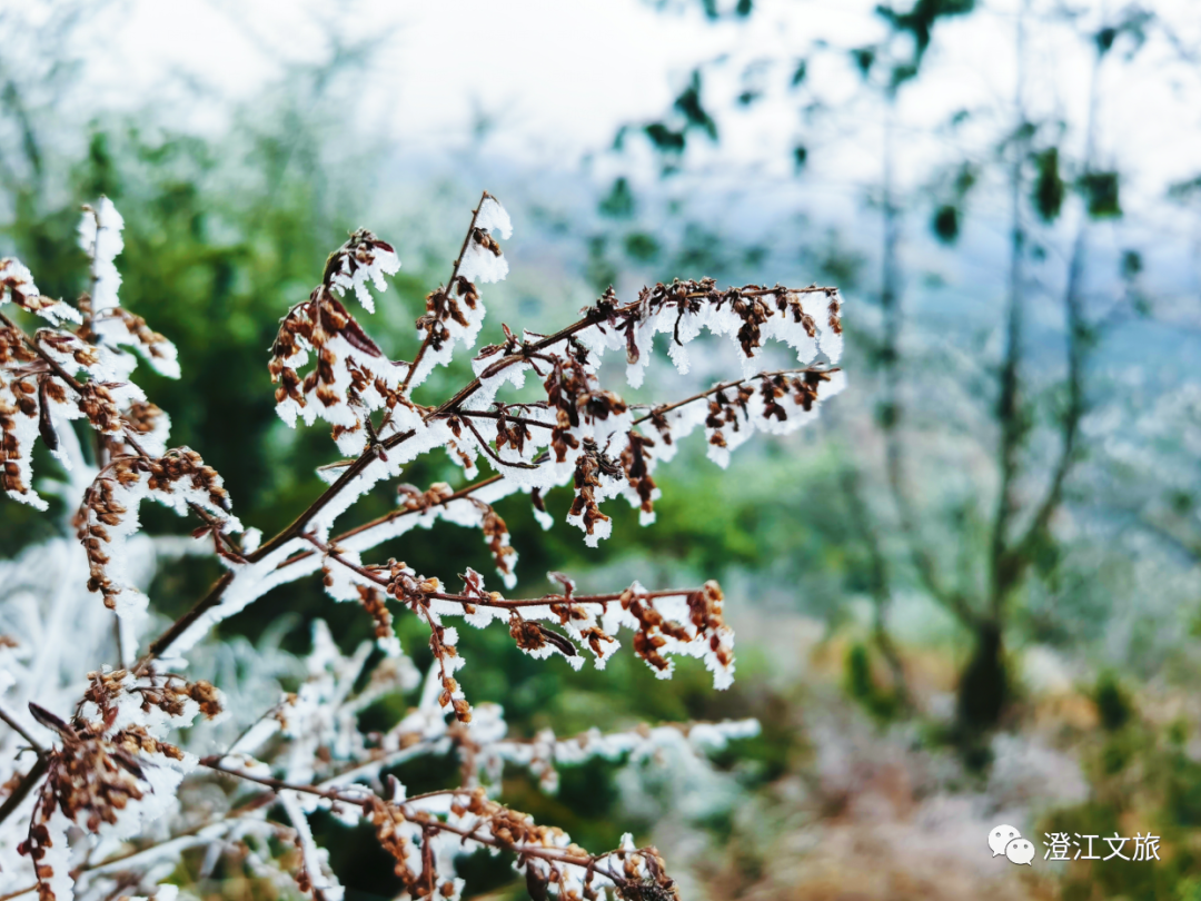 随着初春冷空气南下,冬季的雪晚了许久才来到澄江,在梁王山的深处,晶莹的冰珠爬满了发芽的嫩枝,让这个春天有了不一样的美景!