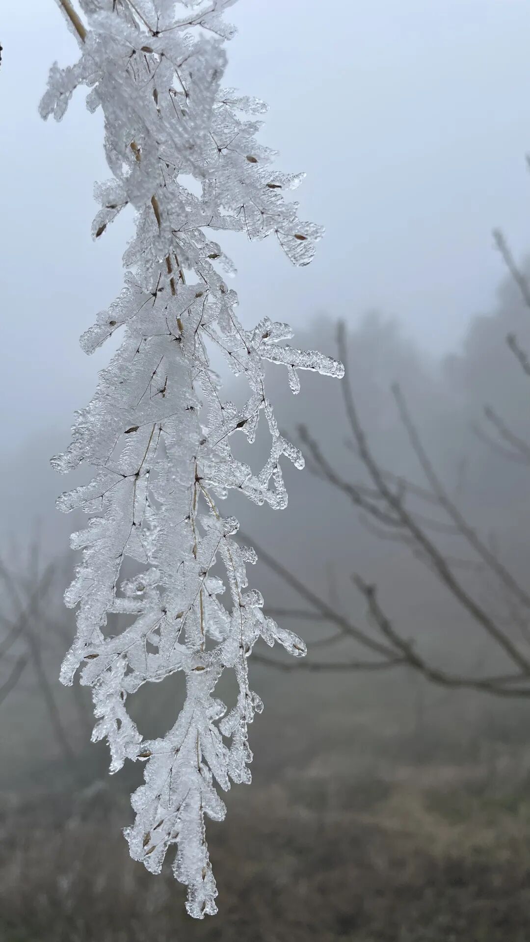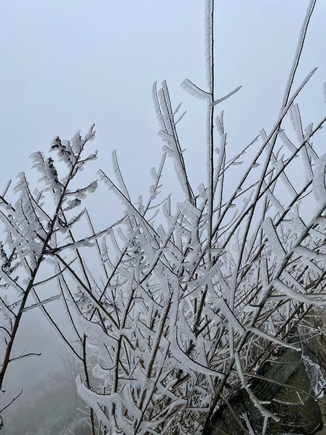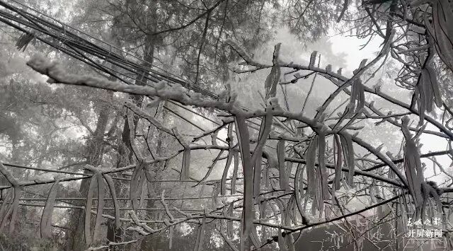 在小道、屋檐、草垛、树枝都覆上了冰霜