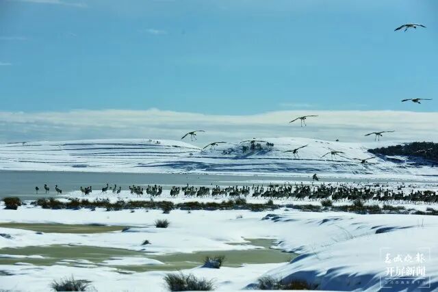 1900多只黑颈鹤在茫茫雪域之上或抱团取暖
