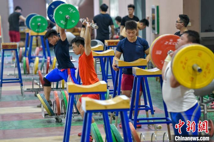 图为国家举重队参加集训的运动员正在训练中。骆云飞 摄
