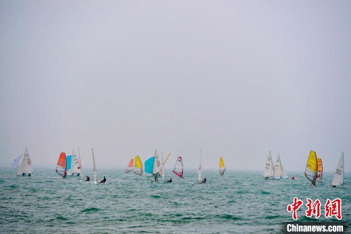 图为色彩斑斓的各类型号帆船亮相海口西海岸。骆云飞 摄