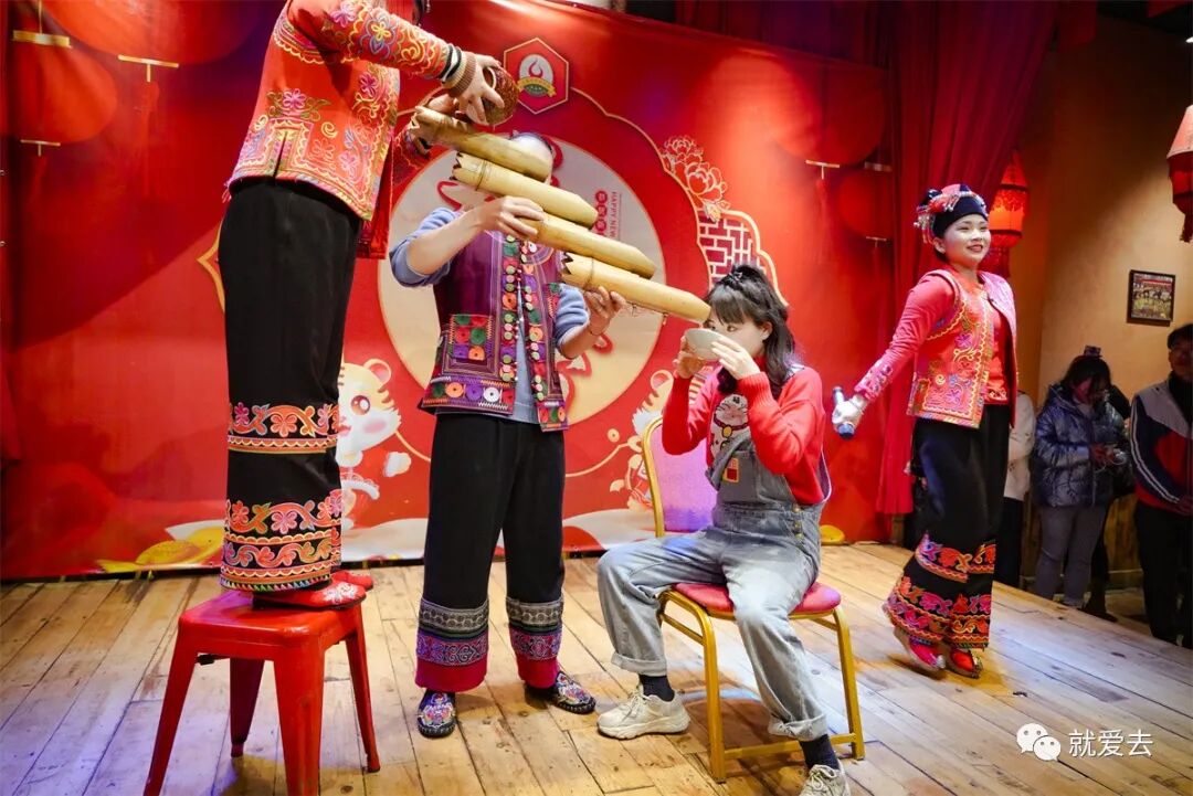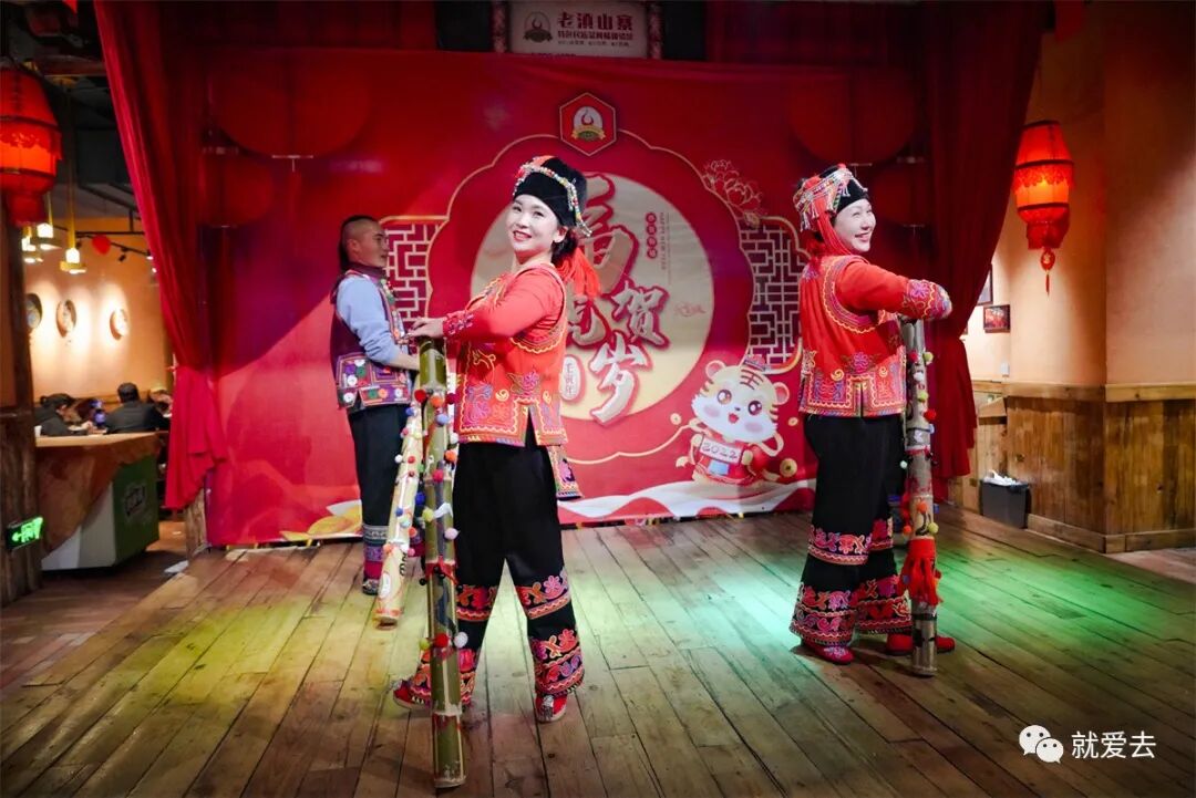 不仅如此,顾客在就餐期间,还能欣赏到特色民族表演,起舞换歌、敬酒互动,浓厚的民族风情在老滇山寨得到了充分的体现。
