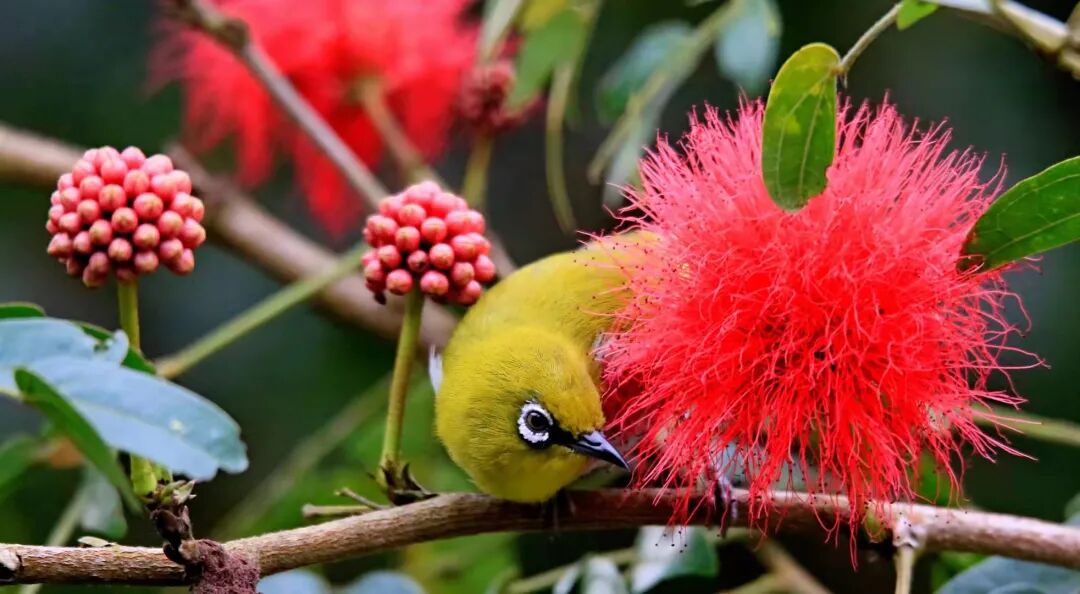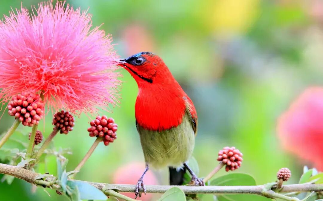 鸟儿闻花香而来