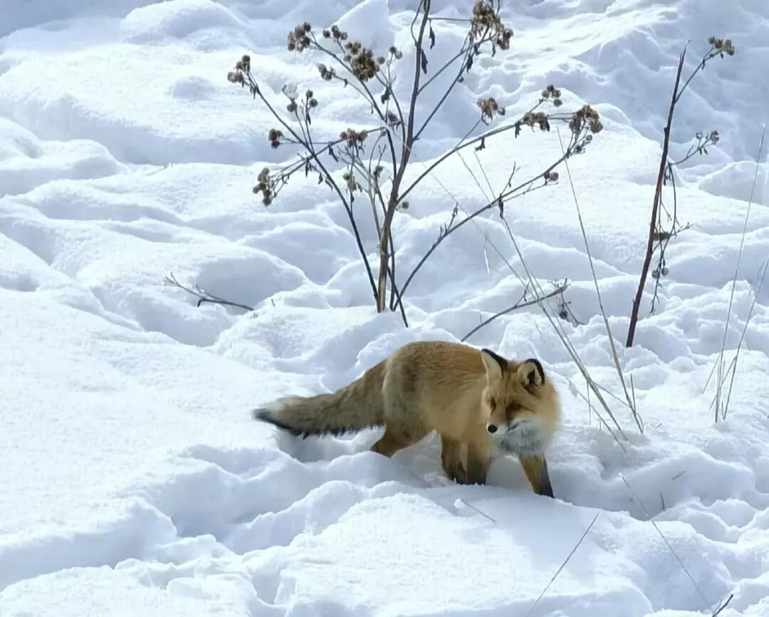 ▲ 在冰雪游旅途中遇到野生小狐狸 唐章军 摄