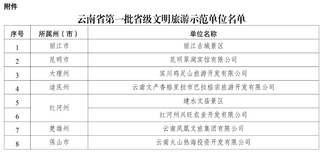 现将《云南省第一批省级文明旅游示范单位名单》予以公示,时间为2022年2月28日至3月8日(公示期7个工作日)。如有异议,请在公示期内,以书面形式向省文化和旅游厅机关纪委进行实名反映。