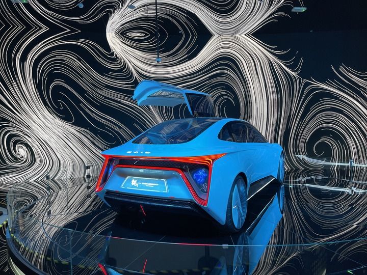 (这是2021年10月1日拍摄的世博会中国馆未来概念汽车板块的展览。新华社记者 苏小坡 摄)