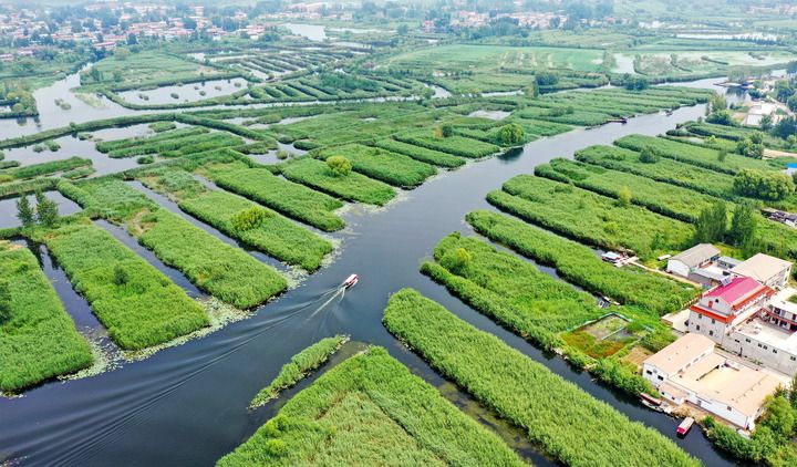(2021年8月14日,船舶在雄安新区白洋淀内行驶。新华社记者 牟宇 摄)