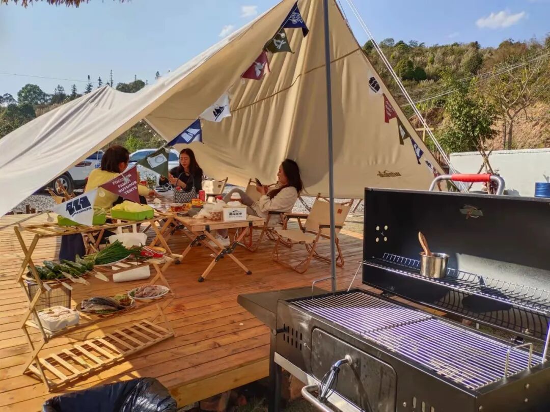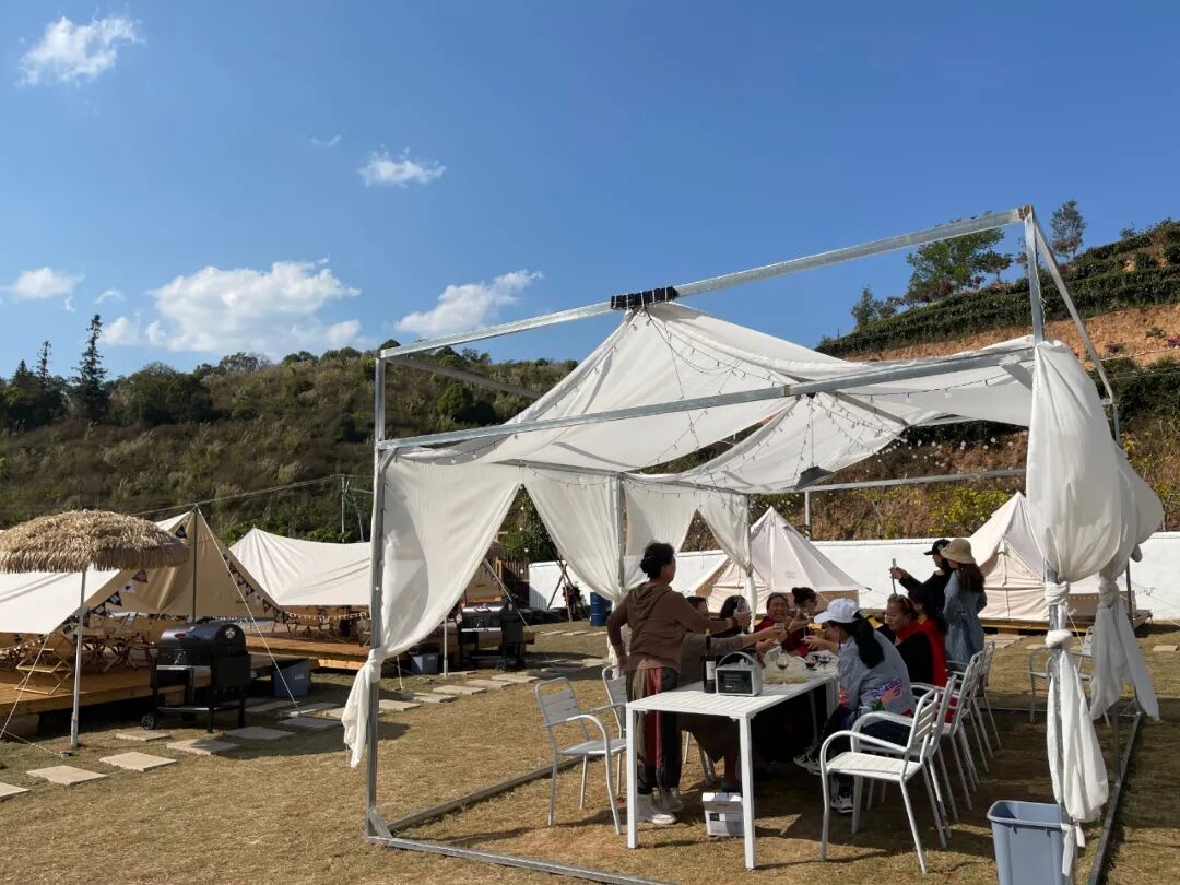 在提及“山河留心”这个名字的由来时,基地老板说:“我们非常喜欢露营,‘山河留心’这个名字代表的是一种对户外的向往,希望普洱的山山水水留住来游玩客户的心。同时也希望我们营造的环境能缓解大家一天的疲惫。”