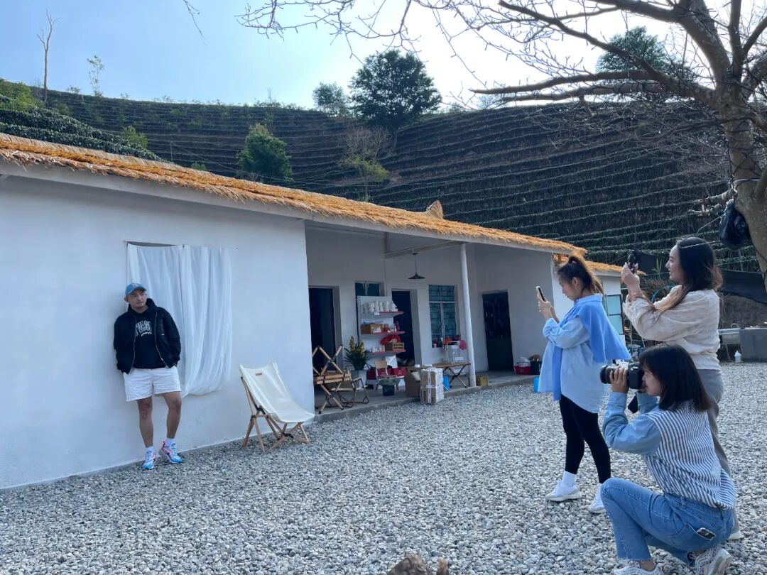 春之初,正好是茶树抽新芽之时,坐拥于山河留心,偶尔抬头望去,还能看见三两茶农在半山腰采茶的身影。这两幅风格迥异的画面连接在一起,展现了大家爱生活,爱旅行,爱露营;有人,有茶,有康乐的城市美好画卷。