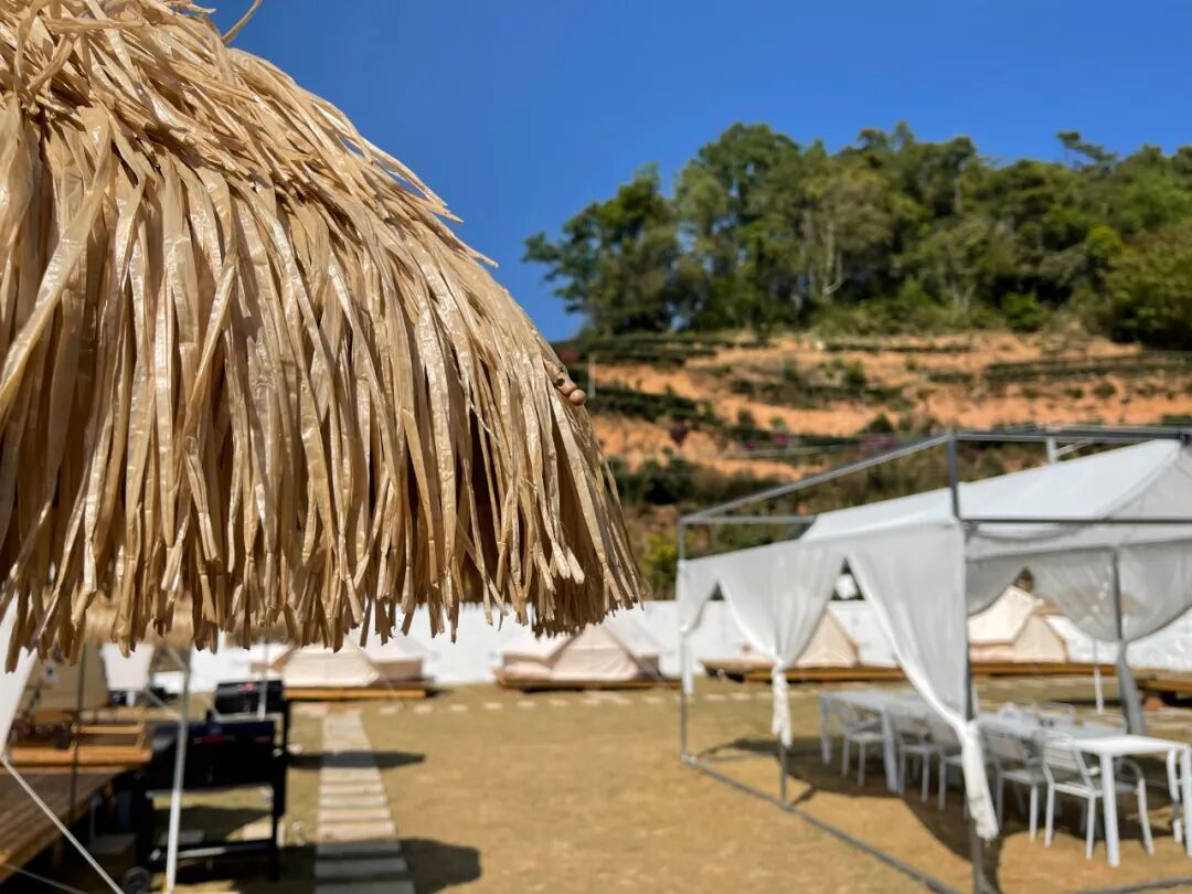 山河留心位于思茅区南屏镇曼连村丁家箐小箐头,三面被茶山所包围,是一家集餐饮、住宿为一体的户外露营基地。基地里面以帐篷和墙壁的白色为主色,搭配了茅草和木头的暖色调,给人一种独特的异域风情。帐篷、露天餐桌,户外烧烤架提供了亲子娱乐、情侣约会和朋友聚餐的别样体验。除了烧烤以外,基地里还有特色铜锅火锅和本地小吃可以选择,最重要的是性价比很高,赢得了许多年轻人的青睐,不过目前只能通过抖音电话预约或者到店点餐。