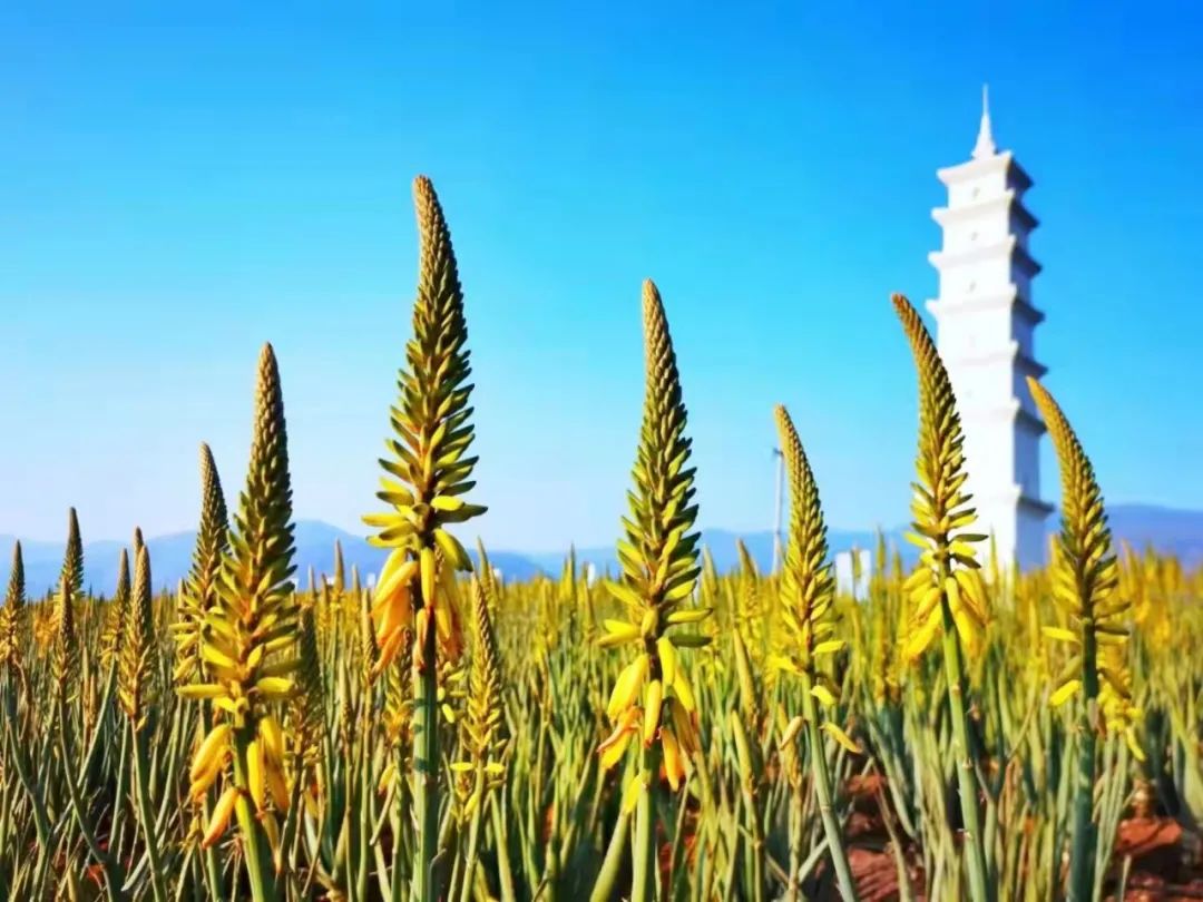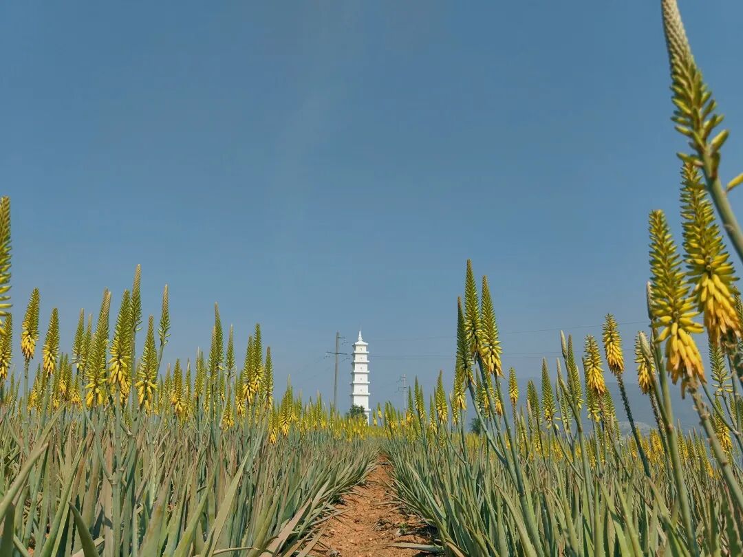 来到位于元江县白塔旁的芦荟基地,万亩芦荟花一览无余地展现在我们眼前,积蓄了整整一个冬季的力量,在春暖花开那一刻,以最美丽的姿态迎接春天的到来。