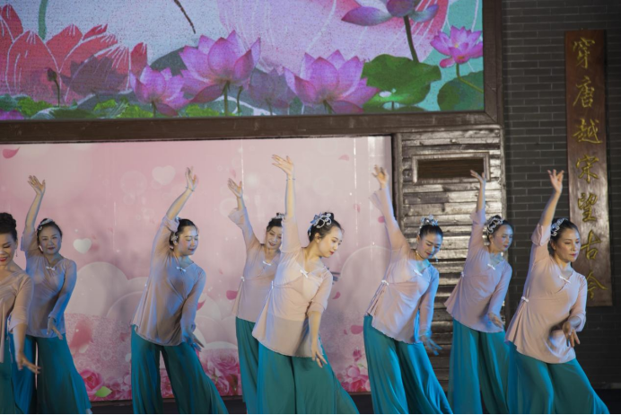 演出在《花开中国》热闹红火的音乐声中正式拉开序幕。此次演出节目形式多样,精彩纷呈,民族秀《布朗茶歌》展现了布朗族同胞们采茶、制茶、热爱生活的精神风貌;葫芦丝齐奏《草原上升起不落的太阳》《阿佤人民唱新歌》以及傣族舞《让我听懂你的语言》表达了人们边疆少数民族人民深深的爱国主义情怀;舞蹈《那拉提的养蜂女》用优美的舞蹈诉说着那拉提草长莺飞的春天。此外,别具一格的伞舞《风筝误》、扇秀《梦乡佛境》等节目将整台演出推向高潮,展现了妇女能顶半边天的时代精神风貌。最后,活动在响扇秀《响彻云霄》热闹喜悦的氛围中落下帷幕。